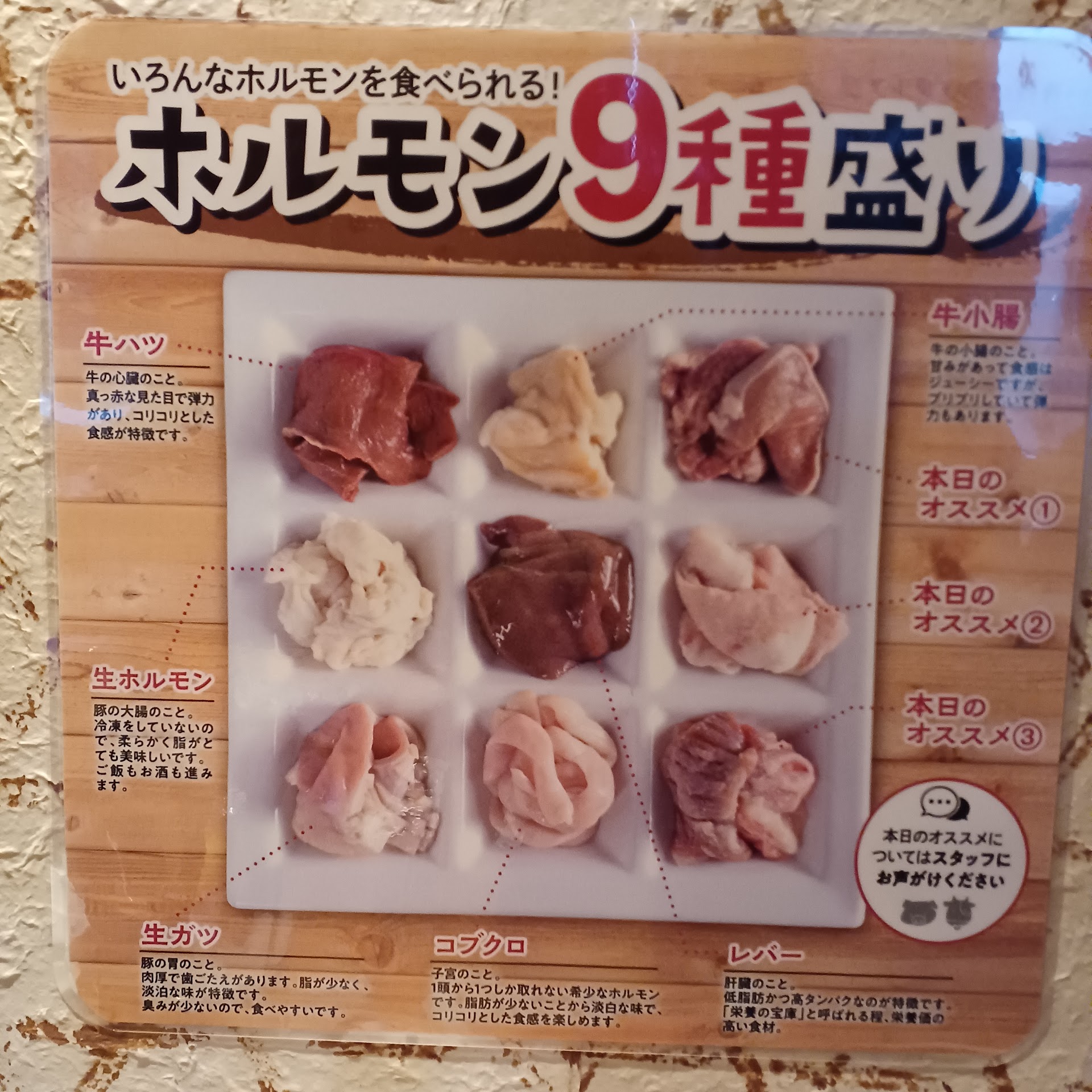 午後4時、一番乗りで行かせてもらいました。 まずはゆったりとしたテーブル席です。 タッチパネルでの注文なのでマイペースで注文出来ました。 牛ハラミはステーキのように分厚くて甘い。 ホルモン9種類食べくらべも絶品です。 子宮も初めてですがコリコリと柔らかな歯触りが美味しかったです。