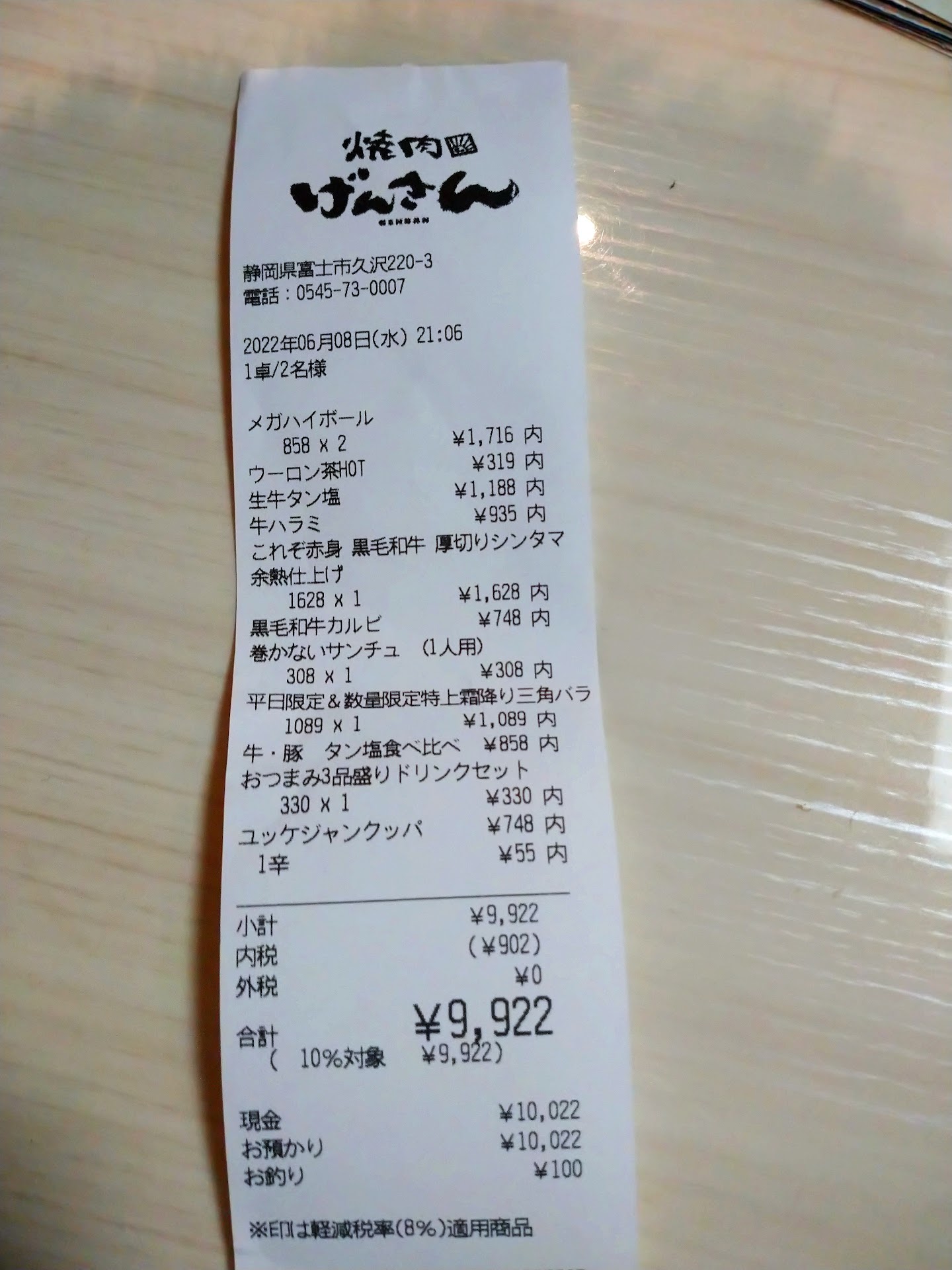 Read more焼き肉屋さんは好きです。 飯屋さんて、3種類かと。美味しいものを提供し、その対価を得るお店。金儲けのみのお店。惰性でやってるお店。 こちらは金儲けのお店かと。 焼き肉の僕が好きだったお店と好きなお店。富士宮にあった釜山、富士の298さん、沼津の高麗。吉原のきたさん。 そちらを知ってるかたなら美味しい焼き肉屋さんは御存じかと。先ずは牛タン。味付けが薄くて(僕は薄口派です)が、味が薄いのにテーブルには塩もコショーもないです。テーブルにある調味料は、タレ、レモン汁、ポン酢のみです。まかないサンチュのお味噌は美味しくないです。これぞ赤身、肉に味がしないのに、ちょっとで、1628円です。焦がしニンニクとか、調味料が3種付属です。肉に味がしないからか。ハイボールもほとんど氷です。お値段と内容が見合わないので再訪店はないです。正直、ビックデイでいい...