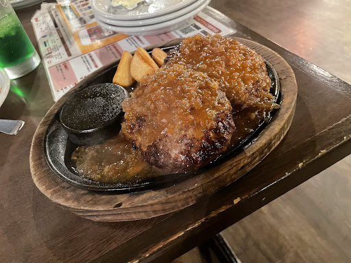 店内は倉庫をおしゃれに改装したような内装で、ディズニーランドの「カリブの海賊」を思わせる独特の雰囲気があります。席間も広く、ゆったりと食事を楽しめます。メニューはステーキやハンバーグを中心に、価格帯もリーズナブルで、サラダバーがセットになっているため、コストパフォーマンスが高いと感じました。