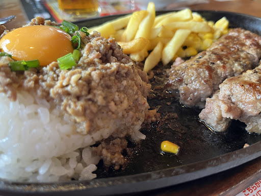 ③【施設とサービス】 座席は約100席以上(106席)で広々。禁煙、カードやQR決済が使え、ベビーチェアも完備 。 内装はアメリカンカジュアルなステーキハウス風で、ファミリーや友人づれにもぴったり  。 看板メニューは、炭火焼ステーキとビーフ100%のハンバーグ。サラダバーも多種類で、デザートまでしっかり楽しめるのが魅力 。 平日ランチは比較的空いていて狙い目。逆に土日は混雑するので、早めの時間がおすすめです 。