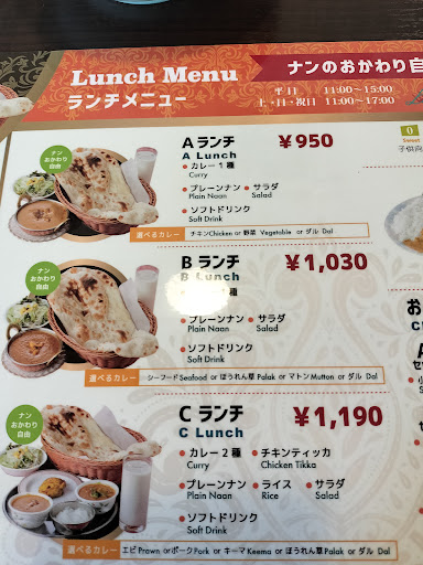 友人の希望で初来店。 ゴールデンウィーク明けのためか、客は居なかった。しかし、昨日までは混んでいたらしい。本場?の人が、調理しているらしいが味付けは好みの味だった。 ランチBで、サラダ、ナン(チーズでは、+200円で変更)、チキンスープ、カレー(3種類から)、ドリンクで950円という安さ。 ナンは、本場らしくかごからはみ出るほどのサイズで焼きたて。湯気がたっていた。 ボリュームがあり、友人は食べきれたが私はカレーが残ってしまった。それでも、お願いすればお持ち帰りができるため、次は無理せず残してまた、お持ち帰りし夕食に回してもいいかも。 カレーはシーフード、貝やいか、エビと量もある。辛さも選べ、中辛でなかなかの辛さ。あまり辛味が得意でないなら、普通以下で試すといい。ラッシーを選択したが、甘い。デザート並み。 他の投稿にあるように、(または、空いていたからか)スタッフは、普段厨房にいるようだか客の様子を時々みて、声をかけてくれる。気遣いがありがたい。 今度は、...