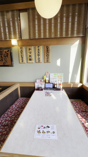 ご飯、お味噌汁(豚汁、岩海苔の味噌汁)、お新香、キャベツはおかわり自由です。 毎年5月頃には、新茶の提供があります。