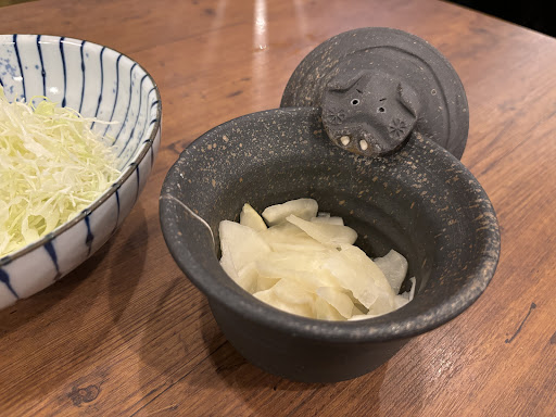 二種類のお味噌汁 二種類のご飯 三種類のお漬物 キャベツが食べ放題で素晴らしいコスパのシステムです。 さらに、お気に入りポイントとして、、、。