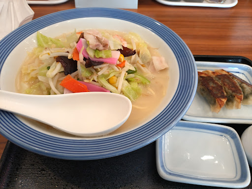 Read more十数年ぶりにお邪魔しました 相変わらず駐車場が独特の狭さと妙な配置で入りづらいのはご愛嬌 入店して驚いたのはチェーン店でありながら、未だに口頭でオーダーすること 自分の勝手なイメージですがチェーン店では今では結構、タッチパネル式の注文方法になっていると思っていたので…… 水等はセルフです ちゃんぽんのスープは四種類から選べます(前からこうだっけ?) 僕は一番ベーシックであろう鶏白湯の長崎ちゃんぽんと餃子3個のセットを頂きました 野菜はシャキシャキ、スープもコクがあって美味しいです 麺大盛り、野菜増しも出来ますが並盛りでも十分なボリュームです 餃子はお値段安いだけあって一口サイズです でも備え付けに出てくる柚子胡椒、これはかなりオススメ! 店頭でも購入可能なようです 店員さんもとても元気で活気も有り...