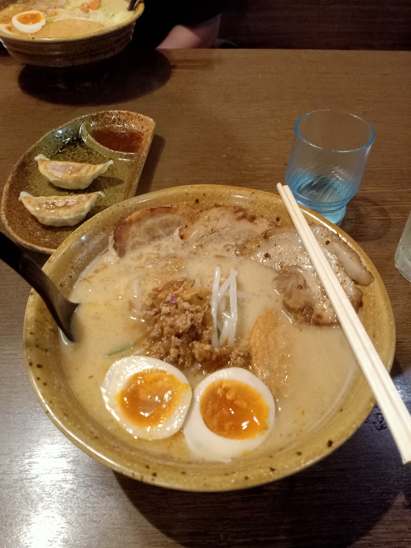 The chashu pork in the ramen was so tasty and tender and the boiled egg and the gyoza complimented the meal perfectly. Great dining...