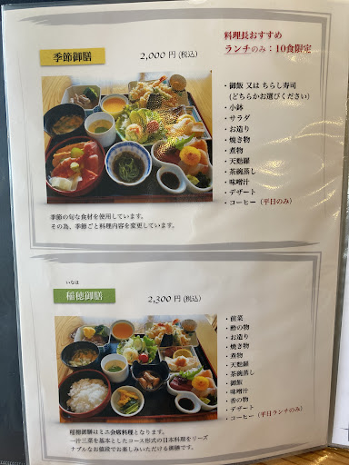 Read more2000円のランチを注文。最初は1枚目の写真だけが届き、「これで2000円?」と正直思ったが、後から2枚目の写真の料理が届き納得(笑)赤いお椀も開けると海鮮丼になっており、ボリューミーで完食できず…涙。 どれも美味しく本格的だが、半分の量で1200円...