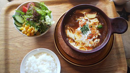 Read more駐車場がかなり狭かったです。 かなり昔にテレビに出ていたのを 思いだし今更ながら行ってみました。 ランチが終わる時間ギリギリに行きましたが、店員さんは気持ちよく対応してくださいました。昔テレビで見たときよりも、メニューが少ない?それとも気のせい?と思いましたが煮込みカレーハンバーグ(サラダドリンク付)を注文。1450円(税込)ボリューミーかと思いきや以外とあっさりしてました。味はイマイチかなぁ。一緒にいってピザを頼んだ母の方が正解でした。デザートのクリップアイスキャラメル(400円)もまぁまぁでした。帰って気がついたのですが、お冷や出してくれなかった。お水も出してくれればよかったなぁ。2人で行ってランチで3700円。少し高めかなぁ。(料理のわりには)次はないかな。1度行...