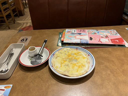 来店時,他に1組お客さんがいました。3人で来店しパスタ3種と他に注文。 最初サラダが運ばれてきましたがドレッシングがかかっていないので,「ドレッシングはないですか?」と聞くと,「あー持ってきますね」とお詫びもなく持ってこられました。 空いていたこともあり数分でパスタ2種類が運ばれてきました。 その後10分ほど経ち最後のパスタ(画像)ご運ばれてきます。 たしかに調理に時間がかかりそうなメニューだなと思いながら頼んだので提供時間がかかるのはいいのですが,混雑時でないのなら,他のパスタと出来上がり時間合わさることはできたのかな?と。チェーン店にそこを求めるのはもしかしたら酷なのかも知れませんが個人的にはちょっと残念でした。