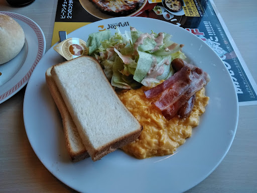 Read moreソーセージハンバーグプレート845円 ポテトフライ218円 ハンバーグもソーセージも想像通りのファミレスの味で安心できます。 ドリンクバーも付いてこの価格なので高コスパだと思います。 ポテトは塩があらかじめ振られておらず、瓶の塩が提供される仕組みになっているため、一見塩加減は自由自在に思えますが乾いたポテトに塩が絡まずお皿が塩だらけになります。しかし安いからokです。 なお、モーニングメニューでも24時間注文できるのは素晴らしいです。 開店当初も同じようなメニューを注文しましたがその際は料理が油っぽく美味しくなかったため足が遠のき、今回はそれ以来でしたがかなり...