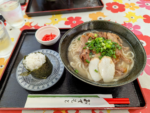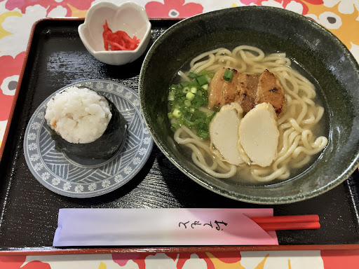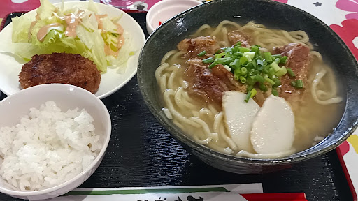 Read more沖縄民謡流れる店内はゆったりした空間で、テーブルクロスなど独特な花柄のテキスタイルがちりばめられていて良い雰囲気。カフェみたいな感じです。 カウンター7席、四人掛けテーブル5脚あり一人でも気兼ねなく利用できました。 〈沖縄そば〉や〈タコライス〉をメインにサイドメニューで〈ポークおにぎり〉などもあり、単品・セットともにリーズナブル。 日替わりランチをいただきました。 ソーキそばはムッチリした麺と豚優勢のコクあるスープがよく合って美味しかった。 メンチカツが蕩けるようなジューシーさで特に驚きました。叶うなら他のメニューも試してみたい。 平日昼時に訪れましたが繁盛しており提供まで少し時間がかかるかもしれませ...