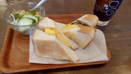 一人で利用の一見客にも丁寧で、アイスコーヒーを頼むと「食べ物はいいですか?」と聞いてくれました。初めてのお店でテーブルにメニューが置いてないところでは「メニューをください」と言い出せずコーヒーだけ頼む超〜〜小心者の私にとって、これがめちゃくちゃ嬉しかったです。 「はいメニューね、これはモーニングの」「モーニングは今の時間でも大丈夫ですか?」「いけますよー」と、ふわふわ心地よいやり取りがあり、モーニングBセットを注文。 少食なので残してしまわないよう、そして体質的にお腹がゆるくなりやすいため、サラダは無しでとお願いしましたが、「…あかんのん?」と言われた時は親戚に好き嫌いをやんわり咎められたような懐かしい感覚になりました。 嫌いじゃないんですよー!と心の声で叫びましたが(笑) きっとサラダもおいしいんだろなーと思います。