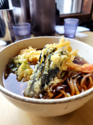 We ordered soba, tanuki udon, tempura udon and a crab hot iron bowl udon, their signature dish. All the dishes were cooked absolute perfection! We even ordered a plate of deep fried wakasaki from Lake Kawaguchi. These are basically just deep fried breaded smelts. They were served with a little side of grainy mustard and mayonnaise. This lunch really hit the spot. The old lady serving was very sweet and the service was very friendly and food came out within 10 minutes! We are leaving...