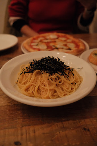 Margherita Pizza was perfectly made with fresh tomato sauce. The Garlic bread was nicely toasted and flavourful The Mentaiko pasta is a Japanese delicacy and is definitely worth trying.