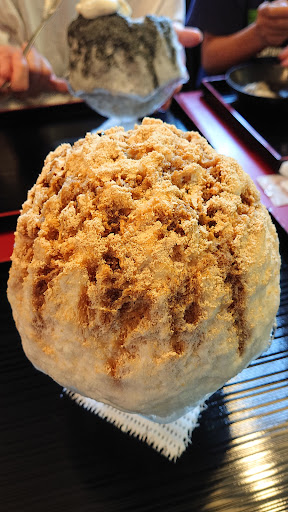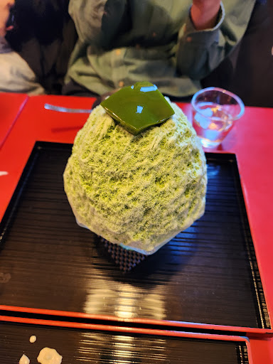 Compact dessert bar serving up bowls of shaved ice decorated with syrups, fruit or jelly.