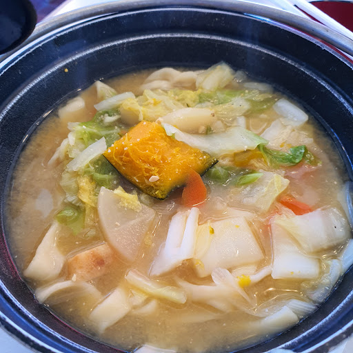 We tried houtou and curry. The houtou soup was really good, but i didn't quite like the noodle texture. For me it was really thick and too chewy, like you can taste the flour (?) very different from ramen noodles. But the soup itself was tasty and umami. Sadly there's no meat inside the soup, so only tofu and veggies. We ordered spicy curry, but as an Indonesian who is so used to eat spicy food, I can't taste any spiciness inside. Even my husband who can't eat spicy food, said it tasted just like normal mild curry. Well, might be different for everyone. The place itself was really cute and well decorated, and when we came the tables were full but there were no queue. we just waited for less than a minute to be seated. We opted for this restaurant since the famous houtou resto beside them had a very long queue, and we had no regrets. The aunties were very friendly even though they speak no english at all. And the toilet was really clean despite the crowd, Oh and the best one you can see mt. Fuji very clearly from inside! Depending on the...