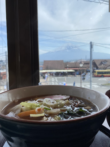 Read moreThis place is situated upstairs and the only and the reason why you want to climb the stairs is the chance to watch Mount Fuji while you eat. There is no better spot to do this. We had the houtou nabe which is thick cut udon with miso soup base, it comes served piping hot with veggies. The soup I thick and very very moorish on a cold day when viewing Mount Fuji. The other dishes such as ramen and chicken on rice is decent but the Houtou is the star here! Be warned that this dish takes time so allow roughly at least 15mins for the food to arrive if you have a train/bus to catch. The decoration is dated back to the 90s but it’s very clean like you’ve travelled through a Time Machine. The service is on point in Japanese style and once you finish your meal. You go down a set of stairs which leads to the souvenir store which is very convenient of them before you catch your transport home. We came to kawaguchiko via a bus service as a day trip to...