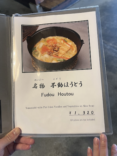 Read moreWe had lunch here at around 12:00 on a Tuesday and really enjoyed the food and service. We were quickly greeted and sat at a table, they have both western style tables and traditional tatami style seating. We were given an English menu and an order was taken quickly and efficiently, they serve just a few dishes with the mainstay being Hōtō (Yamanashi Udon with Miso Broth and Stewed Vegetables). Service was quick and we were amazed to see the staff running around with hot cast iron pans which the dish is cooked and served in. It was delicious and one of our favourite meals in Japan. Highly recommend, filling and great value! Be sure to mix the pumpkin into the soup for all...