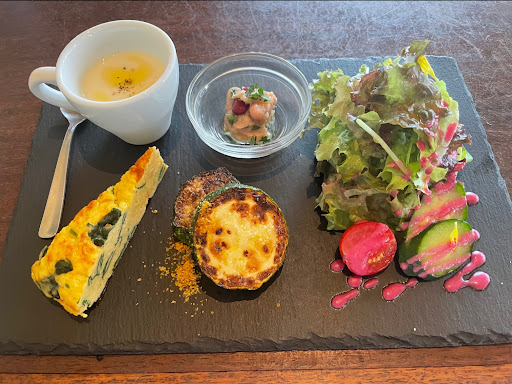 Read more普通だと思います。 予約の電話を入れたら11時半か、12時半のどちらかを…と。ご主人と奥様のお二人でやっているので、おそらくお料理をお客様に一斉に提供する為かと思われます。 メニューはランチセットとランチコースの二つがあったので、コースにしました。 まず前菜が出てきますが、色とりどりの野菜がとてもキレイで、味も良かったです。見た目の美しさはとても大切だと思います。 次にパスタが出てきますが、こちらはメニューの中の三種類から選ぶことが出来ます。トマトソースのものにしましたが、パスタの茹で加減はアルデンテが好みなので、もう少し硬めの方が良かったかな?と思います。ただこれは人によって好みが分かれる所なので、一概には言い切れません。ソースはもう少しコクがあって濃いめの方が良かったと思います。そしてメインが出てきますが、こちらは信州福味鶏のロースト。表面がカリッとしていて中はジューシーで美味しいと思います。食後にはジェラートがつきましたが、こちらは味がやや薄く感じました。 お値段的にも量的にも妥当だと思います。帰る際にはお二人で入り口までお見送りいただきました。気持ちの良...