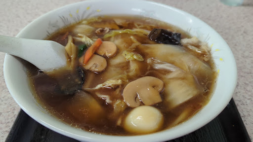 Read more町中華ど真ん中という感じのお店です。 らーめんは、昔ながらの中華そばという感じのシンプルな醤油味にやや細い麺、大きめのチャーシュー、なると、メンマ、わかめと定番具材が豊富にのっているお値打ちの品です。 餃子は、にんにくと生姜が効いた定番の餡を薄皮で丁寧にひだ寄せして包みバリッと焼いた必ず注文したい逸品です。 広東麺は、白菜、豚肉、きくらげ、ヤングコーン、うずら卵、きのこなどの豊富な具材を餡です閉じて熱々に仕上がっています。 店内は、テーブル席に加えて座敷席もあります。またお子様ラーメンやお子様カレーなど子ども連れにも助かるメニューが用意されています。 町中華の多くは、駅前や商店街にあるため、専用駐車場がないことが多い中、駐車スペースが8台あり、車で行ける幸楽はと...