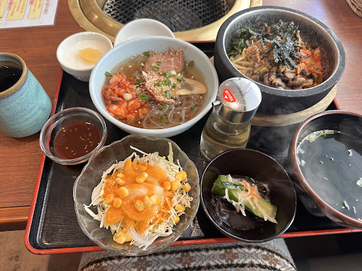 チビッ子が居ない貴重な自由時間に焼肉食べたくて行ったんだけど、冷麺食べたくて焼かないランチにしてしまった笑。 けど1,188円でコレかあ...✨️視覚的満足感高い🎶 安楽亭のレディースランチ昔からイメージ良かったけど、今回の焼かないランチも良かった(^_^) オイキムチ2個だったらしく、後から追加でもう1個来ました。お腹いっぱいです🌼