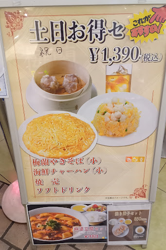 【見た目も味も美味しい梅蘭焼きそばを初体験】 ・休日限定セット(1,390円) を頂きました。 ・埼玉県富士見市。ららぽーと富士見さんのフードコート内で営業されている「梅蘭 ららぽーと富士見店」さん。 ・横浜中華街発祥の「梅蘭」さんでは、「餡かけ焼きそばの餡を麺で包んでみたらどうだろうか」というオーナーシェフのひらめきによって1987年より生まれた「梅蘭焼きそば」が名物。 ・メニュー写真では、ぱっと見「堅焼そば」だけが写っていて「何これ?」となるのですが、実はその中に餡がぎっしり詰まった他にはないオリジナリティ溢れる逸品。 ・今や様々な場所でお店を展開されている中華料理屋さんですね。