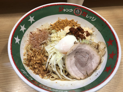 このジャンルのラーメン類は久しぶりなうえに、看板メニューの「まぜそば」ではなくラーメンを注文しました。これから来店される方の役に立つか?疑問ではございますが食べてみた感想を投稿致します。ラーメン普通盛り、無料トッピングの野菜と脂およびショウガまたはニンニクのどちらかを選択の3種類を全て「全増し」で食べました。思ったほどクドくなく完食しました。ボリュームも並盛りだとそんなに食べごたえあるってわけでも(個人差は考慮願います)ありませんでした。味も特に問題ありません。面白みの無い感想ですみませんが、このお店に興味ある方は食べてみるのも悪くないかと存じます。追記、ちょっと胃のもたれを感じます。無料トッピングの脂を止めておいた方がよかったような気がしました。(個人差はありますが) 2018年11月2日25時再訪 今回はまぜそばを食べてみたのですが、店員さんが「嫌いなモノが無ければトッピングは全マシをおすすめします」とおっしゃったので言われるままに全マシで…胃もたれしそうな味になって…もう歳かなぁ…野菜ジュースが飲みたくなって駅前のコンビニへ行きました。次に行くときがあったらトッピングなしでいこうかと思いました。まさしくジャンクな味でした。野菜ジュースって美味しいなぁ…ってしみじみ思いました。 ↑まぜそばを否定的に書きすぎちゃったかもしれませんので、追記いたします。私が体調が良く無いか胃腸が老化しているせいだったと思います。若くて食べ盛りの方やお年を召していても胃腸に自信のある方はぜひ召し上がって見るべきだと思います。私も体力回復させて再チャレンジしたいと思います。 2020年7/10再訪、冷しまぜそばを食べてみたのですが、無料トッピングのニンニクと辛味の刺激ばかり強く感じてあまり美味しく感じられませんでした。私の好みに合わないだけかもしれませんが…麺の味や食感についても、なんか硬いだけみたく感じられ、これなら普通の冷し中華とか、盛り蕎麦や、冷たく締めたうどんの方が…まぁ私の好みに合わな...