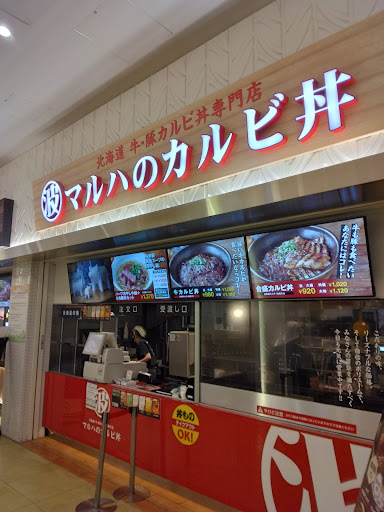 Read moreららぽーと富士見の1Fフードコート内にあるカルビ丼のお店。 フードコートなので他にも色々なお店がありどれにしようかなっと見て回るのもなかなか面白い。 ここマルハのカルビ丼は牛肉か豚肉のカルビ丼が召し上がれる。 牛肉カルビは少し固めであり、少しジャーキーを噛んでいる感じがしたが、噛んでいると牛肉の味がじわじわと楽しめる。 豚肉カルビは角煮のような食感でお口に入れたら蕩ける感じのお味がぶわっと感じるのが面白い。 ご飯の量も並盛でも一般の方であれば十分な量で焼き肉のたれと焼き肉の脂がまざった特製のたれが絶妙な味が染み込んでいるのでご飯もおいしかった。 ただ、お肉の厚みが薄く量が少なめなので少し減点とした。 可能であれば牛肉と豚肉カルビが味わえる合盛...