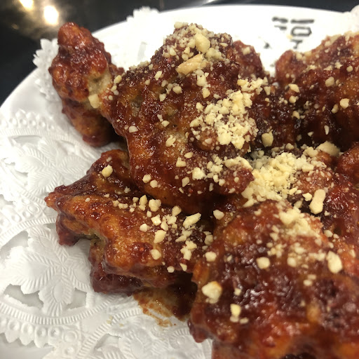 ヤンニョンチキン…揚げた鶏肉がブニブニしている。冷凍唐揚げをチンしてヤンニョンソースを絡めただけ?