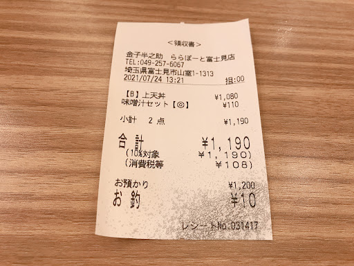Read more年末年始の中でこちらのららぽーとにお買い物行った際に、フードコートで金子半之助の天丼屋さんがあったため、日本橋で食べた以来、数年ぶりにフードコートですが、天丼の金子半之助を頂くことに…。 注文は江戸前天丼 単品 ¥1,584-を注文。