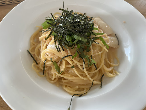 Read moreランチセットにパンの食べ放題がついてます。 メニューはパスタ系が多い気がしますが、定期的に変わるようです。 ランチセットには メイン、サラダ、スープorデザート、ドリンクバー、パンがついているようです。 前はパンもビュッフェ形式で取れたのですが、今はコロナ対策なのか注文したら何種類か持ってきてくださり、店員さんがお皿に入れてくださいました。 店内は綺麗ですし、御手洗も綺麗です。 テラス席もあり。 ケーキやパンの販売もあります。 焼き菓子も、鯉のぼりの焼き菓子や、手土産に使えそうなものなど色々とありました。 ドリンクバーは、紅茶とコーヒーとアップルジュース、グレープフルーツジュース、オレンジジュースとありました。 スライスレモン、ミルクなどは好みで取れるようになってます。 コーヒーと紅茶は、予め作ってあるものを保温ポットに入れてありました。