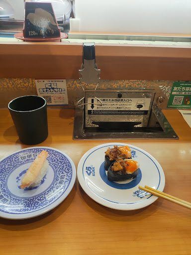 Excellent place for eating something quick and cheap. Well as long as the meal is on the conveyor. Since if you order a specific meal from the touch panel so it can be brought directly to you, it can take up to 10 mins or so, and more if the place is crowded with people wanting to eat dinner. I waited at the end like 15 mins for a Mitarashi Dango, and I wasn't in a hurry, but I felt it to be kind of slow for just a dessert. However, if you are truly a Nigiri fan, maybe you'll get disappointed, cause the meals on the conveyor aren't bad, yet I feel like it lacks a something, as on a expensive place the the freshness, it's sensation on your mouth or the taste you get from the raw fish is deeper. Anyways, if you want to eat something good, then I recommend the meals 200 JPY or above such as Chutoro or Ootoro (Tuna), Unatama(Eel and...