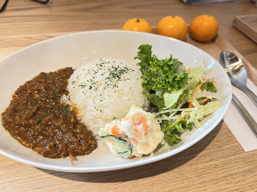 私が行った日は「Chez mama」の日。 近くの主婦仲間たちが集まって運営しているような感じで、手作り感満載のカフェにうれしくなります。 カレーを頂きました。 肝心の味はというと、カレーの深みが全くない単調な味付けだったので少し残念でしたが、デザートでいただいたみかんが絶品!さすがみかんの里です!!