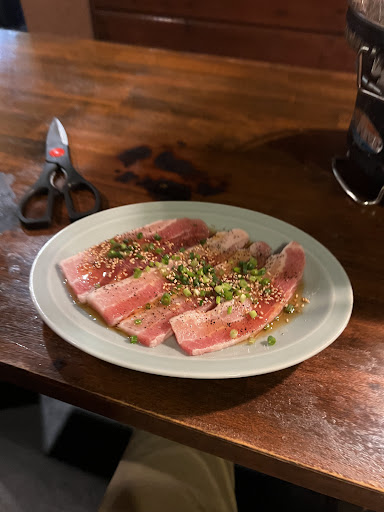 着皿! ピートロ塩生姜焼きは焼いたらそのままで食べるとのことでしたが生姜の部分があまり感じられなく普通のピートロ塩になってたかな?でも美味しい😋。カレーナンコツは某粉を纏っていて焼くと香りが良くて食欲そそります。コリコリ食感にスパイシーな味付け‥良きです😁辛ホルモンは一味のピリッとした辛味があって全てがスパイシーな味付けでどれも美味しい!他のメニューも気になるので再訪は確定かな?ただ、1つだけ不満があってメニュー表が油で...