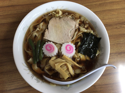 初訪問なので、私は太麺中華そば(大盛のみ)800円、相方は中華そばとミニカレー900円。 太麺は茹で時間がかかるだろうと思っていたらそんなに待たずに着丼。 太麺はパスタのフィットチーネ、きしめん 並みの幅。青竹で鍛えられた手打麺は厚さがまちまちですが、それが食感の妙を生みだしています。 麺の薄い厚さのとこはツルって感じもあったり、厚い部分はモグモグ(だけど武蔵野うどんのゴワゴワ、ワシワシでもない不思議な感覚) デフォルトで海苔、焼豚、メンマ、いんげんが添えられたノスタルジックな一杯です 飽きのこない、こねくり回さないシンプルだけど食べ継がれていく藤岡のソールフード なんだろうなぁ、毎日でも食べられる 気軽なラーメンがあって羨ましいなぁと思いました。 美味しかったです�...
