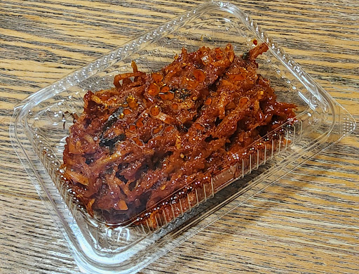 また、付け添えのキムチですが、オリーブオイルのキムチのようで、コクがありとても美味しいキムチです⤴️お持ち帰りがありましたので、150gで600円と割高だったのですが、知人へのお土産と自分用に2個購入させていただきました😀