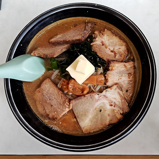 Read more藤崎町にある老舗ラーメン屋さん。 店内の椅子や、旧煙草自販機が懐かしき町中華の良い味出してます。 醤油、味噌、塩ラーメンと選べるのですが、札幌ラーメンと看板に有り、今回は『味噌ネギチャーシュー麺』と、評判が良いと口コミに書かれていた『炒飯』を注文。 味噌ネギチャーシュー麺は、辛味ネギが乗っていますが、そんなに辛くは無かったです。赤味噌ベースなので、甘めの白味噌ベースの味噌ラーメンが好みの方は、少しイメージが違うかも知れません。 そして『炒飯』ですが、シンプルな焼豚、卵の中に、刻みキクラゲ?がポイントで入っており、独特の醤油の香ばしさが引き立ってて、美味かったです。 炒飯だけなら★★★★★付けたい位です。 炒飯には中華風スープが付いていますが、煮干し出汁の雰囲気?が有りました。 このお店の様な町中華のお店は、本当に営業が続いて欲しいと心から思います。 美味しく頂きま...