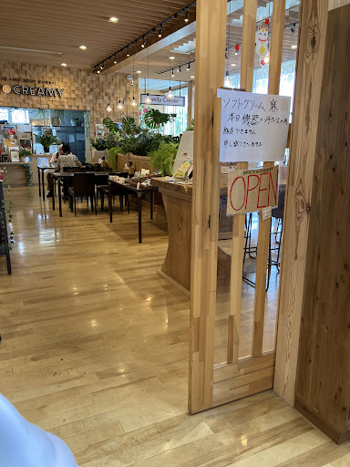 お水はセルフです。厨房の脇に給茶機あります。食器類は片付けなくても良いようです。 お手洗いは店舗出て右手にあります。 産直施設の共用のお手洗いです。 お子さまいらっしゃる方に助かる作りになっていました。 トイレ休憩にも立ち寄って見てはいかがでしょうか。 産直施設の中なので色々楽しめます。 お子様が小さくて店内ではと言う方はお弁当を買って外...