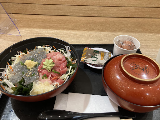 Read more2024.3月 その後も2度ほど利用しているけど、量も少なくなり満足度が低くなった。この日は生しらすばらちらし丼1320円を注文。髪の毛が入っていて、受け取る時にすぐに伝え変えてもらったけど気持ち悪くなってしまった(思い出してしまい)。 2023.7月 久しぶりに訪問。物価高騰ですごく高くなっているのでは?と思ったけど。。あまり変わらないような。注文しやすいお値段で◎ 生しらすが美味しい。店員さんも感じよく湘南エリアはいいね。 2021年 テラスモールのフードコートでよく食べている生しらすまかない丼(1150円) 生しらすとマグロが半分ずつのっていて、鮮度もよし。生しらすは透明でピカピカしている。カップに温泉卵を割り入れ、ポン酢or醤油をたらし、軽く混ぜてしらすの上へ。 フードコートだからとバカにしていたけど結構好み。いつも不満なのが、お味噌汁の蓋がなかなか開かないこと。これ、お味噌汁を飛ばしちゃう人がいるんじゃないかなぁ。 生しらすがどうしても食べたい時は、『とびっちょ生しらす入荷情報』をTwitterでチェックしてから。1月~3月中旬は禁漁期間。 最近、江ノ島の本店にも行ってきたけど、コロナ渦、テラスモールの方が清潔感があり、安心かも。フードコートだけど、平日の空いている...