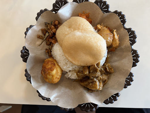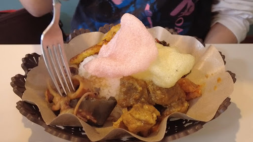 日本人女性の方がワンオペで切り盛りされているが、旦那さんがインドネシアの方だそうで、料理の味付けは本格的。おかずは7種類から4つ選べる。どれも食べたくて迷ってしまった。店名(Nikmat =おいしい、満足という意味のインドネシア語)のとおり、どれもおいしかった!一品ずつ味わいながら、後半は色々混ぜながらテイストハーモニー。サンバルの辛さもちょうどよい
