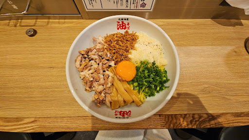 [感想] 藤沢駅北口にある人気油そば店。 町田商店、豚山、長岡食堂、いと井などのギフトホールディングスの系列。 横浜駅西口、恵比寿、川崎駅、武蔵小杉など関東に多数店舗がある。 2024年3月にオープンしたばかり。 たまたま2か月前に横浜駅西口店に行って良い店だと感じばかりだったがこの度藤沢駅にもオープンした。