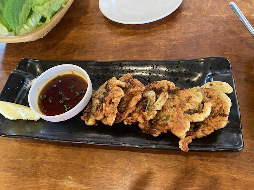 まず、チヂミ〜1,280円めちゃ美味い!牡蠣の存在感神です レモン塩も良いけどタレも良きです