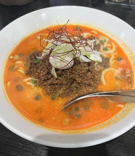 Read more湘南台駅西口近くに昔からあるラーメン屋さんですが、初めて伺いました。平日13時頃の訪問で店外待ち客一名と、繁盛店のようです。5分ほど待った後に店内へ通されましたが、とてもコンパクトな作りです。券売機で 担々麺(太麺)1辛を注文。お値段は1,080円とノーマルタイプで千円オーバーは、物価高を反映した価格設定。担々麺の辛さは「なし」〜「少なめ」、「普通」、「多め」、「1辛」、「2辛」、「3辛」の7段階からチョイス可能で、お初の私は「1辛」をチョイス。各席にティッシュペーパーの用意があったり、希望者には紙エプロンが提供されるのは有り難いですね。程なくして提供された担々麺は、見た目も鮮やかで美味しそう。スープ表面にはラー油が多く、長時間熱々が持続していました。「1辛」スープの辛さは丁度良かったですが、個人的には辛さの中に少し「甘さ」が欲しい所…。具のひき肉(甘い味付き)はタップリあり、他は...
