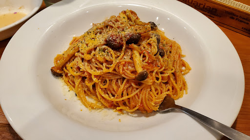 Read more結構美味しいかも!?でもペスカトーレはスープパスタな感じになるので自分は好みじゃありませんでした。シチリアーノ美味しい、あと有料で大盛り可能で、かなりボリューム満点です!!