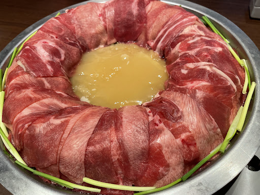 ◆牛タンの葱しゃぶ 健美コラーゲンスープ ここから牛タンのターン。(※ダジャレじゃないです) 細切りした葱と薄切り牛タンをコラーゲンスープに落として軽く熱を通したら一緒に口の中へ。 あっさりしたスープのほどよい塩味と牛タンの味わいがマッチしてますね。 しゃっきりした葱の食感と風味もいいアクセントで、箸が止まりません。 嫁はかなりお気に召したようでなによりです。
