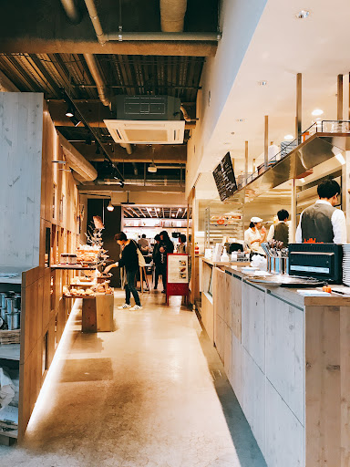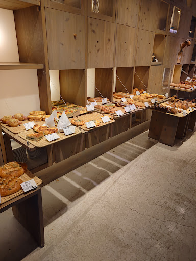 表参道店と比べるとイートインスペースが広く、外の緑も見えて雰囲気もとても良いのですが、 なにより動線が悪い。 パンの陳列とレジが狭い通路を挟んだ配置の為、パンを選ぶ人・レジに並ぶ人・食べ終わって帰る人がその狭い通路でごった返す。 パンを選んで入れるカゴもオシャレだが網目が大きく不安定の為、人とのすれ違い等に気をつけないとパンが目から抜け落ちる…