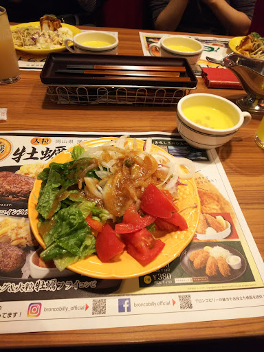 ステーキハウスブロンコビリーの前身はステーキハウスブロンコ❗️1979年に名古屋で開業しその後に首都圏に進出❗️ 横浜岡沢町と自由が丘と蒲田に店舗があって、その頃私は食欲旺盛な20才の若者で横浜岡沢町店と蒲田店にはよく行きました❗️ 当時の店はまるでウエスタン映画に出てくる様なダークな木製店内で、まだサラダバーは無くステーキもハンバーグも鉄板皿と同じ大きさで、初めて見た時の衝撃は今でもよく覚えています❗️ 当時、これほど大きなステーキとハンバーグはブロンコしかなかったので、いつも若者で賑わっていました。 懐かしかったので、前段が長くなりました🙇