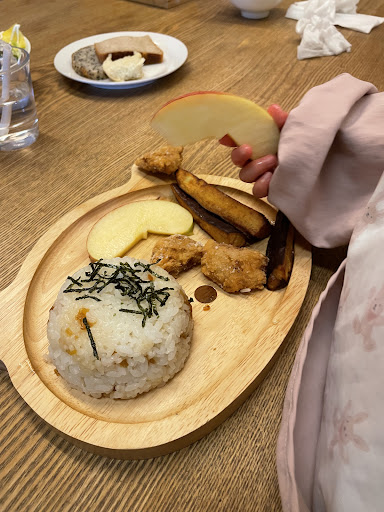 お料理はどれも無添加オーガニックのこだわりで値段は1500円前後でサラダ、パスタ、ライスとメイン料理の中から選んで、どれでもパンが食べ放題でついてきます。同じ施設内のパン屋さんのパンで帰りに買って帰ることもできます。 キッズプレートは1種類で650円です。混ぜご飯(白米or玄米)と大豆ミートの唐揚げ、サツマイモスティック、リンゴ、ジュース(リンゴorみかん)です。