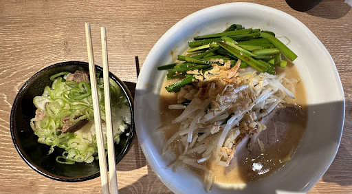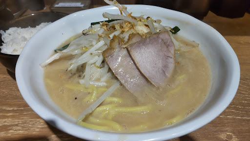 Read moreそこそこ最近できたラーメン屋さんで今日初めて行ってみました。店内はテーブル席が確か3つとカウンター席になっています。 基本は味噌ラーメン、辛味噌ラーメン、黒味噌?ラーメンの3種類でそこにトッピング等を追加していく感じです。最初から辛味噌ネギラーメン的なトッピングされているものもありました。入り口の左に券売機がありそこで食券を購入して店員さんに渡して注文するスタイルです。 店内も綺麗で涼しく快適に食事を楽しめました。今日は味噌ラーメンにニラ&ニンニクをトッピングし、ねぎ飯も頼みました。味噌が濃厚でとても美味しかったです。また初めてで知らなかったのですが、麺大盛り無理とライス無料のサービスがありました。食券を渡す時に聞かれます。ライスはおかわりが確か何杯でもできるようなことが書いてあったような気がします。 なのでねぎ飯買わなきゃよかったなと少し後悔しましたが美味しかったのでよしとしました。 卓上には一味、ニンニク、花椒(ホアジャオ)、胡椒などの調味料やライス用のふりかけ、お漬物などが無料で使えるようになっておりとても良心的なお店でした。また行かせてもらおうと思いました。しいて言うならカウンター席に荷物置きが無いので荷物の置き場に困りました。 追記2023/8/18 本日2回目の来店でした。お店の方すみません。荷物置きのカゴが入り口入って右側とカウンターの奥にありました。 必要な方はそれを使うといいと思います。 また、冷水とコップはカウンターにいくつかあるので食券購入後に券売機の横で無理して取る必要はないです。あとナプキンが券売機の上にあるので女性の方含め汁の飛び散りが気になる方は使用するといいかと思います。 それと自分の胃袋のキャパをちゃんと把握しておらず本日ライスを半分残してしまい申し訳ありませんでした。...