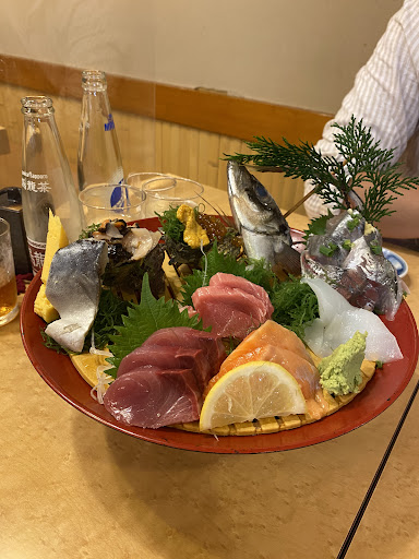 Read moreI don’t recommend it. Restaurant smells like fish market. I understand that u sell sashimi, but I ate at different places and none of them had such a strong fish smell. Tbh food portions are complete scam. I paid 3500 💴 for sashimi set and at the plate 60% is just decorations. Fish head is uneatable, green grass also, shells were empty (inside was just deco grass, you just get the little what you can see on top of them). I was very disappointed. Also about the „salted fish set”: I’m sorry, but 2 little pieces of daikon?! Cut in half?! Come on! This is just ridiculous 😂 Fish had more bones than meat, so… again, very...