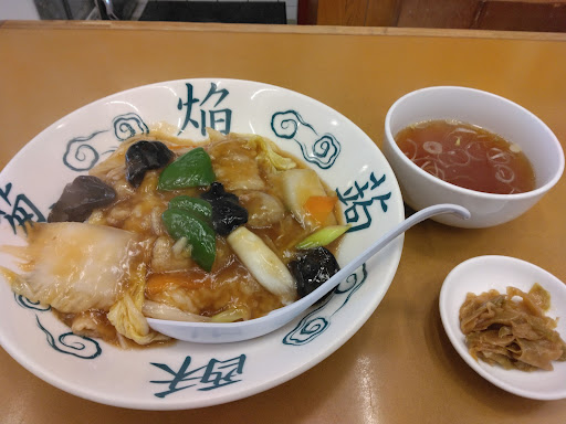 ココ、久しぶりの訪問です♪ 中華丼大盛りを注文ですが、あれれ⁉️量が少な過ぎですね😭 何十年も前から行ってるので、ビックリしました🫢 ちゃんと厨房では大盛り出来たよ〜って言ってましたので⁉️間違いでは無さそうです😭 前は皿の文字の上の方まであったって思うけど〜⁉️ ご飯も具材も少なく、具材は少なすぎてご飯透けて見えちゃってました😅 なので途中で半ライス追加ですが、食べてる最中でしたので写真は無しです💦 半ライスでもスープとザーサイ付けて頂き、味も含めてそこはナイスでした🆗 味はスープも含めて凄く好みなのに、量はチョット?だいぶビックリしました💢 先日同系列他店でサンマーメン頂きましたが、具材が少なすぎって感じました😭 若い時は、ココ系列で大盛り注文で満足でしたが、中年になった今、確実に食べれる量は減ってますが、満腹感なしってトコでしょうか😭 だって、周りの老人さまたちも、酒+麺と定食とか〜複数注文してるもんな〜👀 細めのお兄さんも、ご飯お代わりしてました👀 定食や一品料理やチャーハン、中華丼は系列店でも扱ってない店もありますので、貴重な店舗では〜あります👍 藤沢駅地下店は麺類しかないですからね。 今度は麺類とライスか?定食だなぁ。 店員の対応や調理の速さはとてもナイスで気持ち良い感じです👍 ココが踏切前にあった頃が懐かしいなぁ。 ホント量以外は満足で...